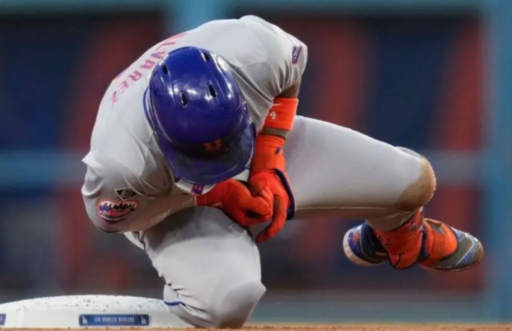 Álvarez estaba en el primer encuentro de una asignación de rehabilitación con Triple-A Syracuse, recuperándose de un esguince en el ligamento colateral cubital del pulgar derecho. Fue golpeado en la mano opuesta durante la sexta entrada y fue retirado del juego.